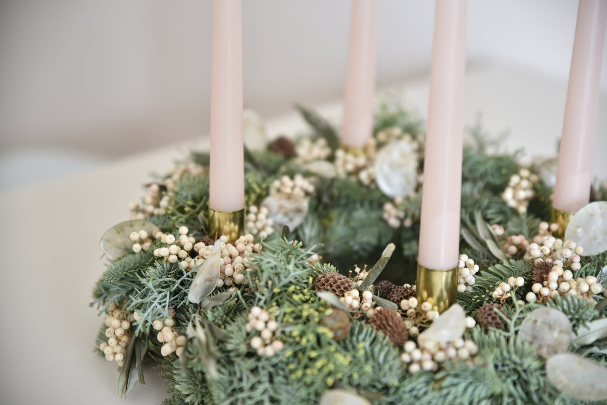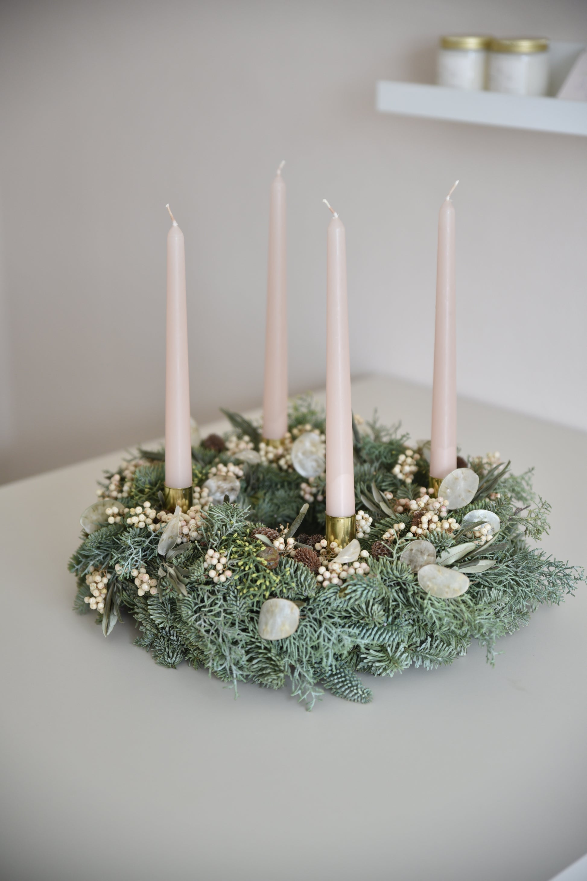 Živé vence z nobilisu, vlastnoručne vyrobené. Obsahujú prírodné sušené prvky, držiaky na sviečky a sviečky (dávajte pozor, nenechávajte horiacu sviečku bez dozoru).